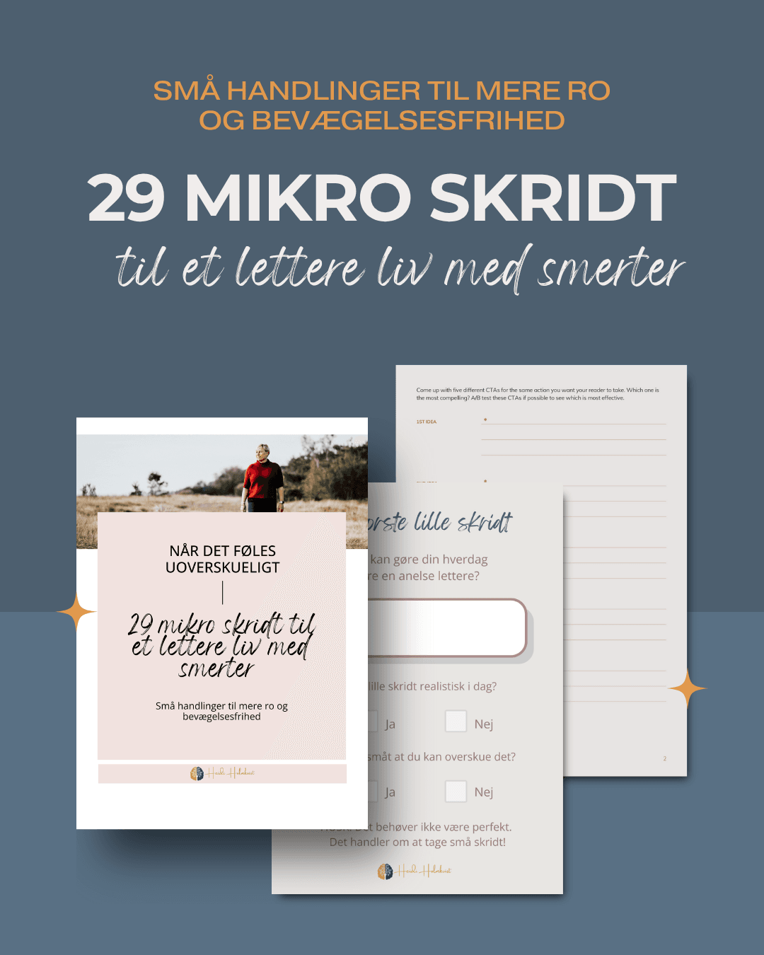 Jeg hjælper mennesker som dig med at få mere frihed, færre begrænsninger og styrke til at gå efter det, der former et meningsfuldt liv - på trods af dine smerter.